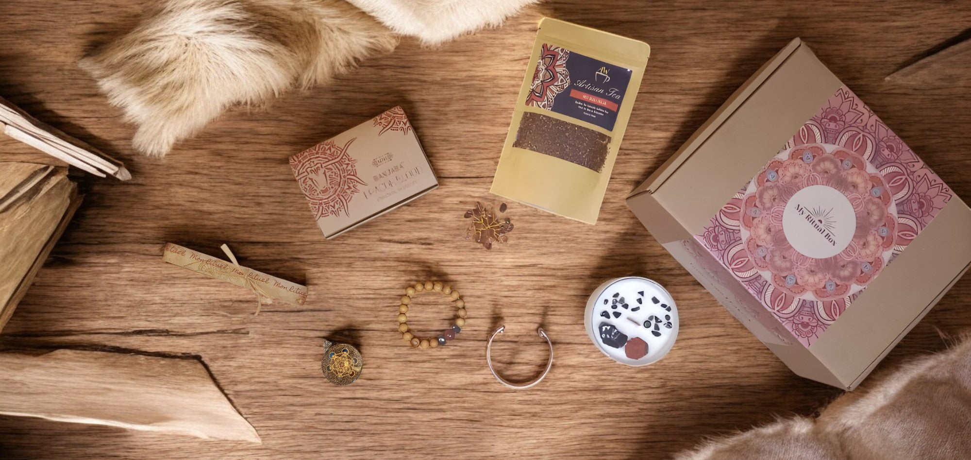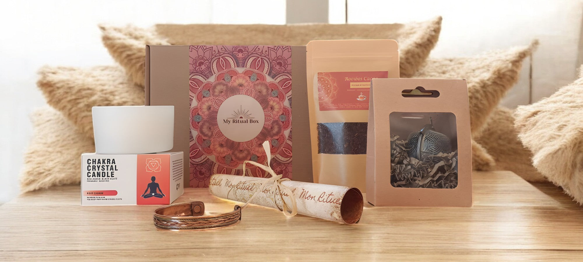 • 3 à 5 produits choisis avec soin pour accompagner ton cheminement (bougie, encens, bijou, pierre, huile essentielle, thé...).